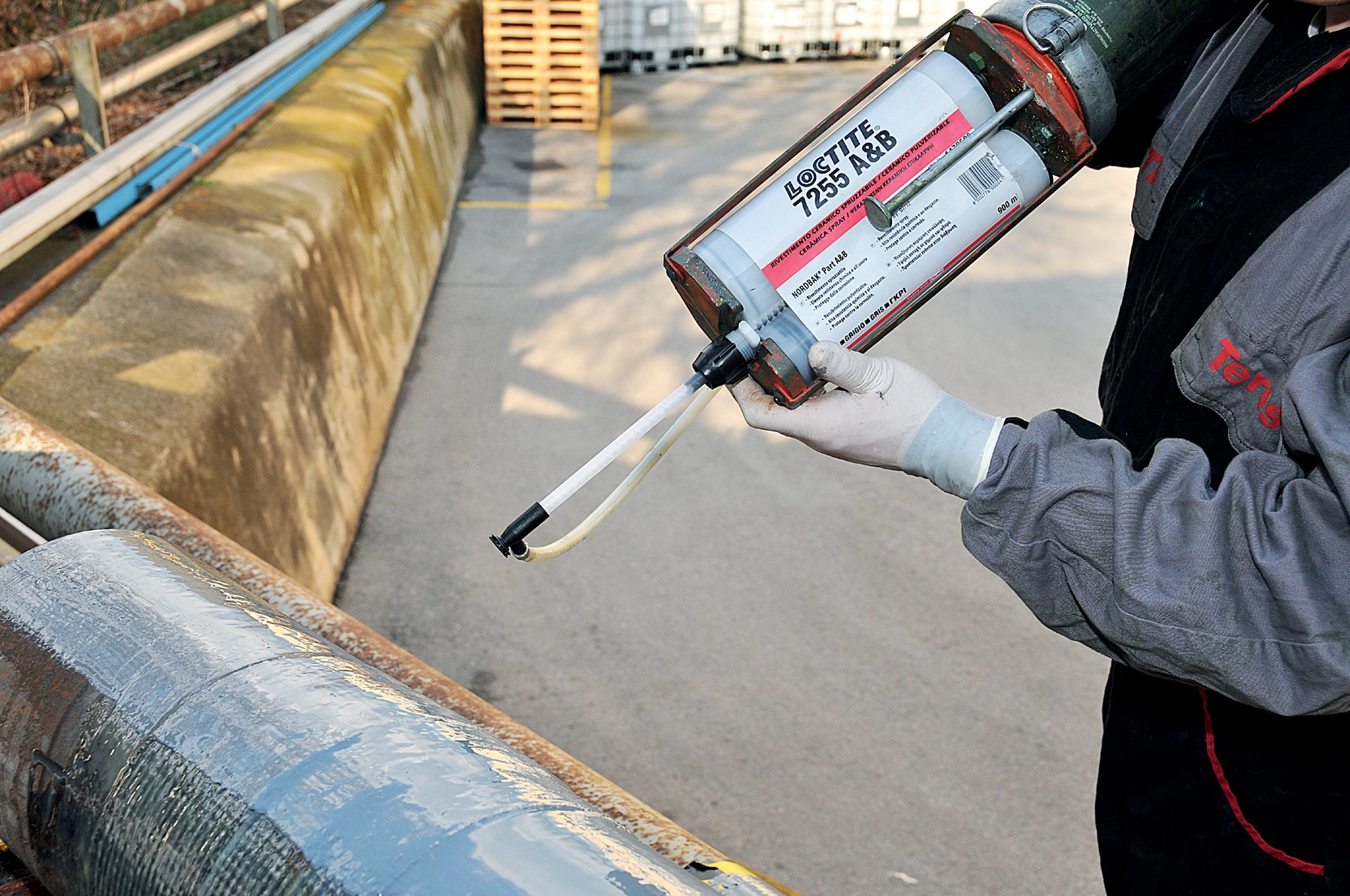 Recubrimiento epóxico con partículas cerámicas aplicable por spray que protege equipos contra desgaste, erosión y corrosión.
